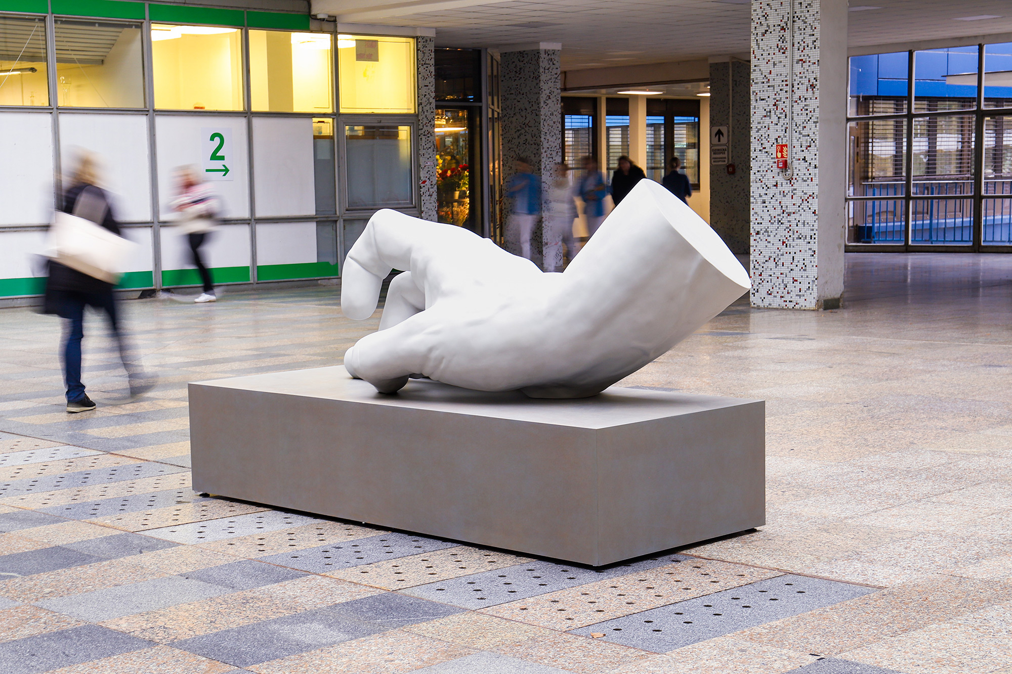 Ruka – realizace Moniky Váňové Horčicové nese jednoduchý název, který odkazuje k části lidského těla – ztvárněné v nadživotní velikosti a zachycené v gestu naznačujícím přípravu k odcvrnknutí neviditelného předmětu. Ten zde záměrně chybí a ponechává prostor divákově fantazii. Ačkoli může dílo na první pohled působit banálně, je třeba si uvědomit, že gesta rukou patří v dějinách lidstva mezi silné symboly.